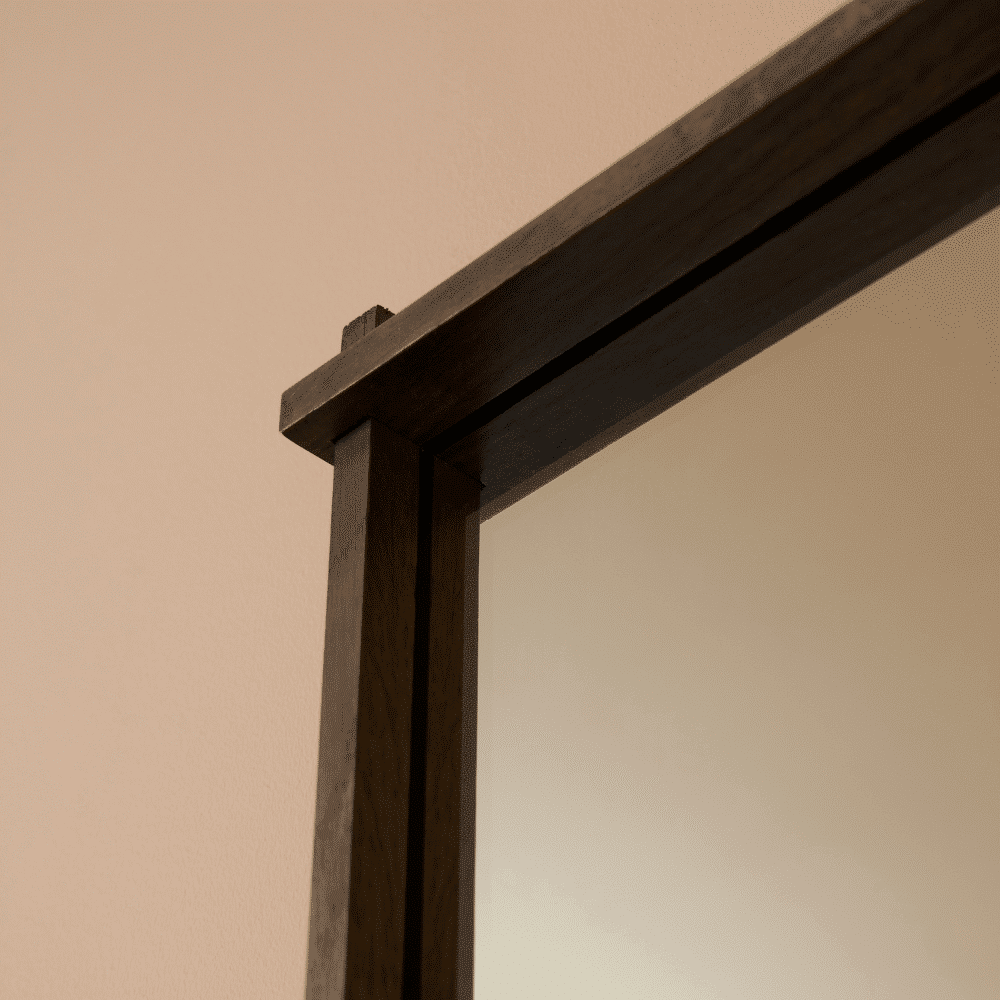 Cross Kollektionen er designet med en slank ramme i massivt egetræ, som giver et elegant og minimalistisk udtryk og sikrer en god holdbarhed. Den enkle, men stilfulde ramme gør Cross Kollektionen til et tidløst spejl, der både passer perfekt ind i en klassisk eller moderne bolig. Den massive træ ramme er designet med en fin og unik detalje, som danner et kryds i hvert hjørne og skaber et moderne og stilfuld look.