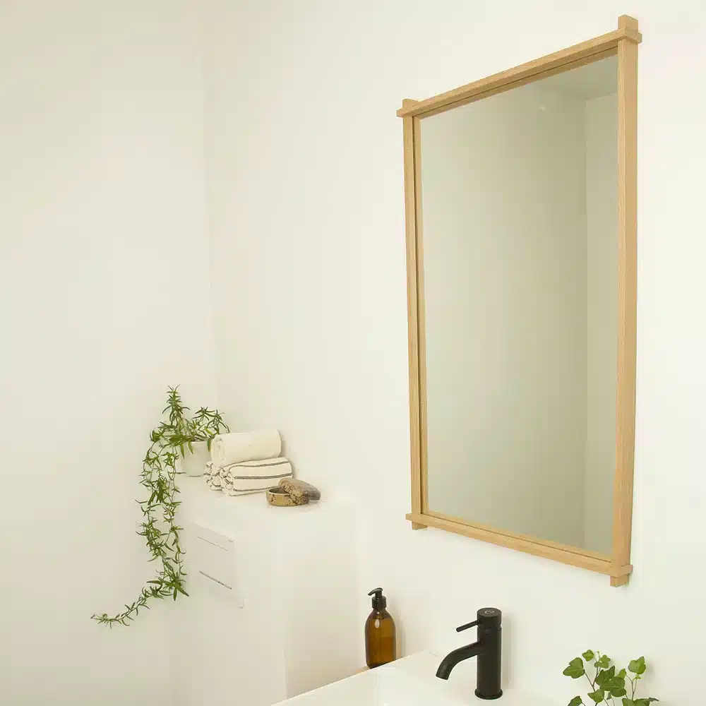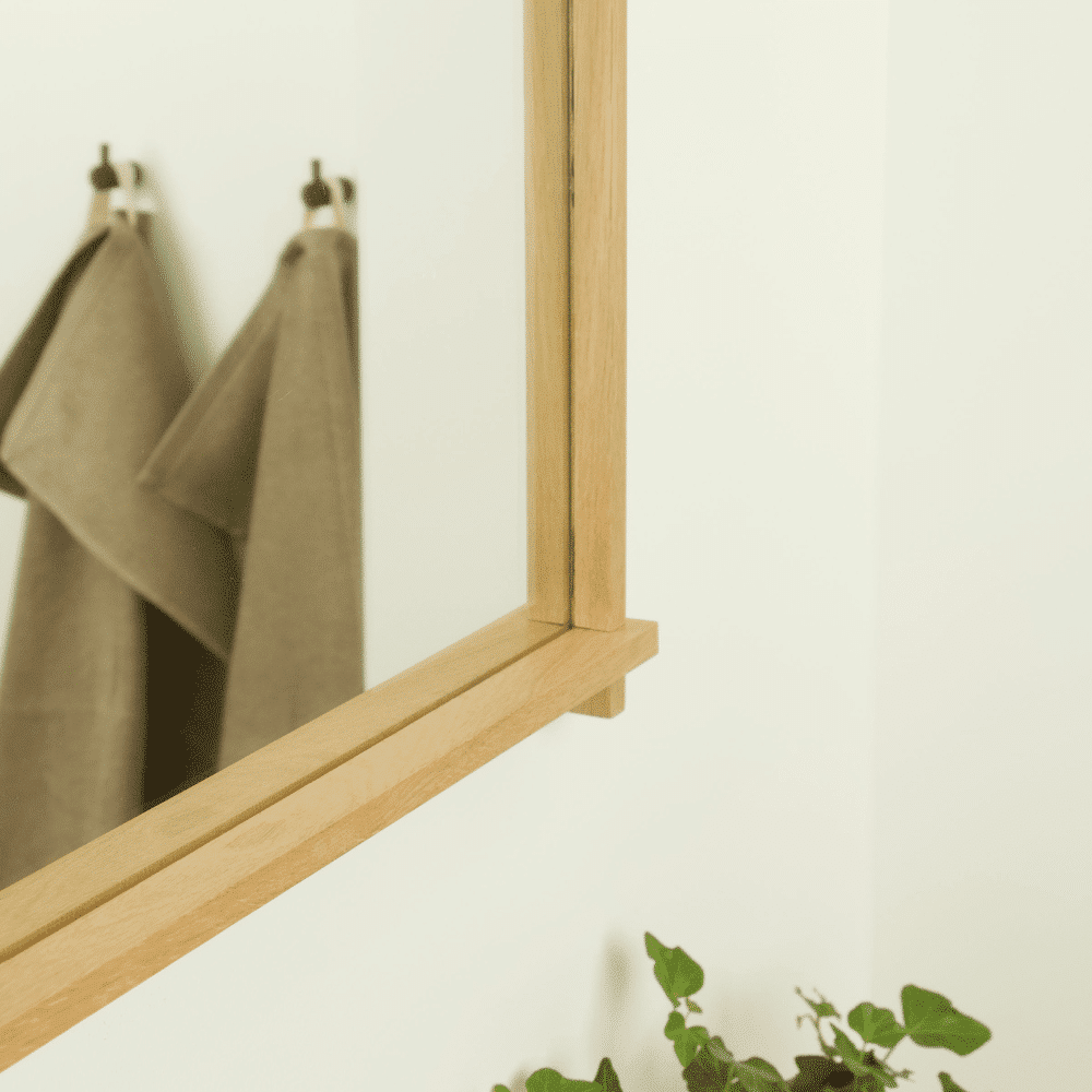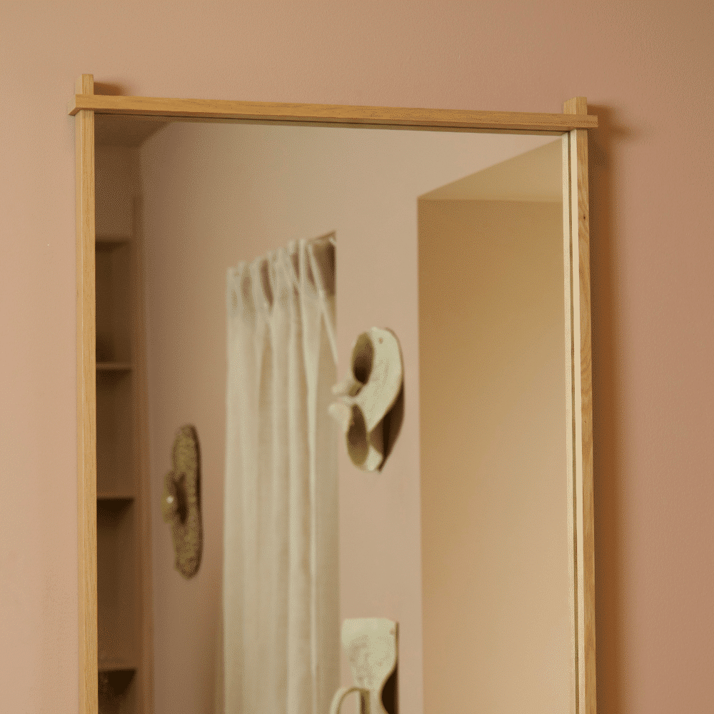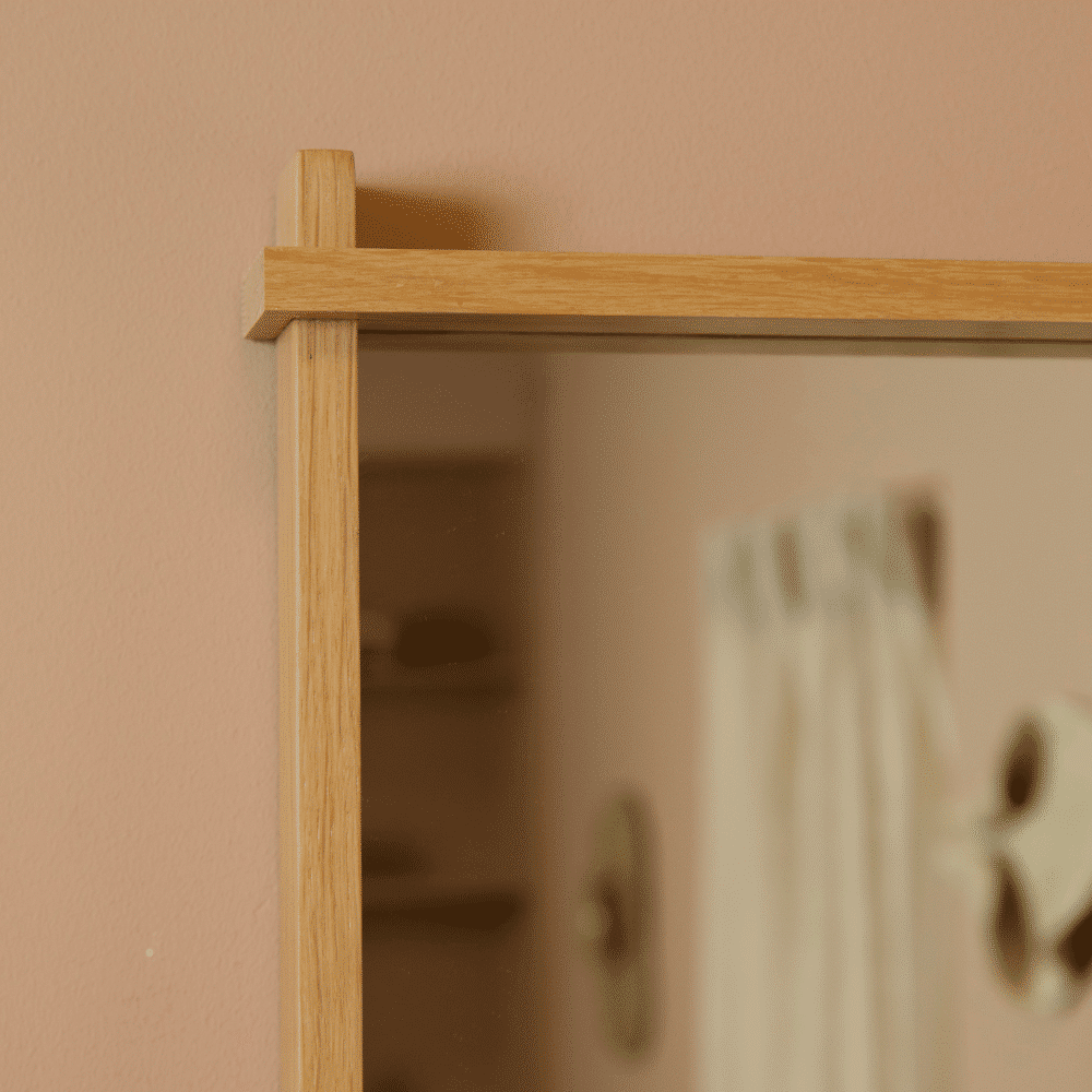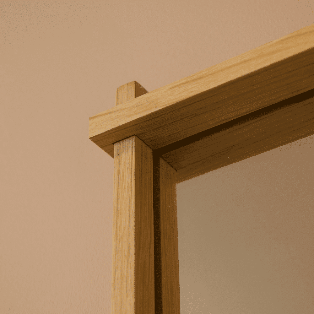 Cross Kollektionen er designet med en slank ramme i massivt egetræ, som giver et elegant og minimalistisk udtryk og sikrer en god holdbarhed. Den enkle, men stilfulde ramme gør Cross Kollektionen til et tidløst spejl, der både passer perfekt ind i en klassisk eller moderne bolig. Den massive træ ramme er designet med en fin og unik detalje, som danner et kryds i hvert hjørne og skaber et moderne og stilfuld look.