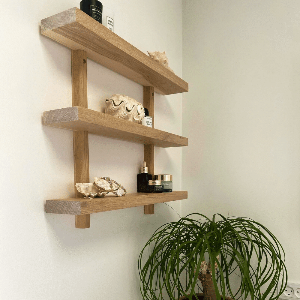Rus 3 er en stilfuld og funktionel væghylde i massivt egetræ med tre hylder, der giver dig både praktisk opbevaring og et tidløst design. Den naturlige træstruktur og varme farvetone gør Rus 3 ideel til ethvert rum – brug den i stuen til bøger og dekorationer, i køkkenet til krydderier og kopper eller på badeværelset til en lille plante og skønhedsprodukter. Hyldens robuste konstruktion sikrer lang holdbarhed, mens det minimalistiske design passer perfekt til både moderne og klassiske hjem.