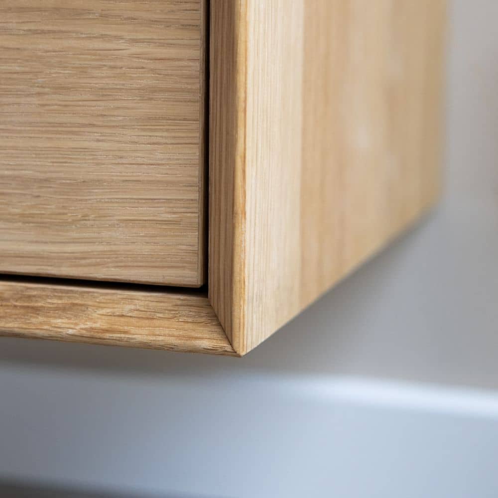 Modulet er fremstillet i egetræsfiner og omkranset af en skrå ramme i massivt egetræ, som ikke kun tilfører et smukt udtryk, men også beskytter mod ridser og mærker fra daglig brug.